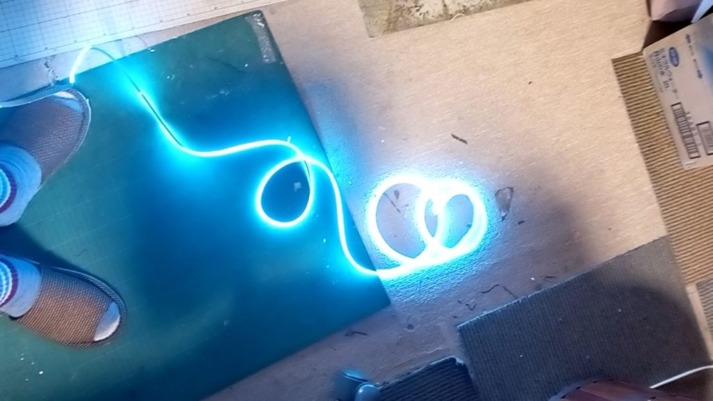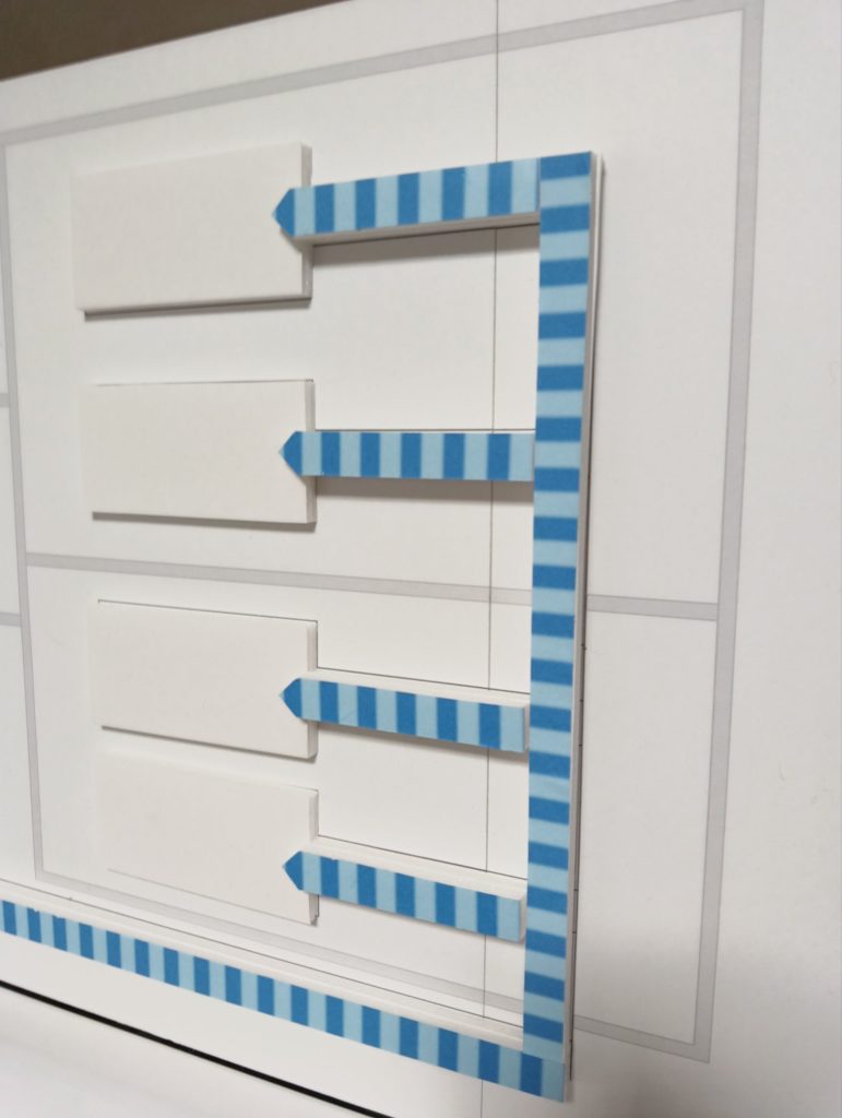 こちら 印刷ですが青いところが LED の流れです 白いプレートに向かって LED が光ります 。白いプレートに表示するアイデア募集します。